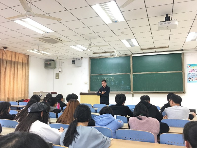 地理信息科学17-3班与地理信息科学17-2班联合举办了“三到一构建之‘我的青春故事分享会’”主题团日活动,同时,有幸邀请到了17级辅导员陆可为同学们分享他的故事与经验。