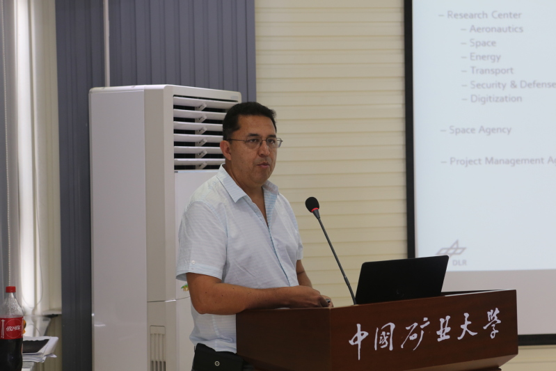 讲座由德国航空航天中心地球观测中心(DLREOC)研究员Loyola博士对DLR参与被动大气探测任务的介绍开始,Loyola博士讲述了自1995年启动的被动大气探测任务到现在的发展,简略介绍了所使用卫星及其技术的变化,以及对未来的展望,并向同学们介绍了大数据在地球观测中的应用,以及相应的例子。最后,他表示希望DLR能够与矿大进行更多的成人游戏交流、合作,并对未来双方的合作计划做了简略的介绍。
