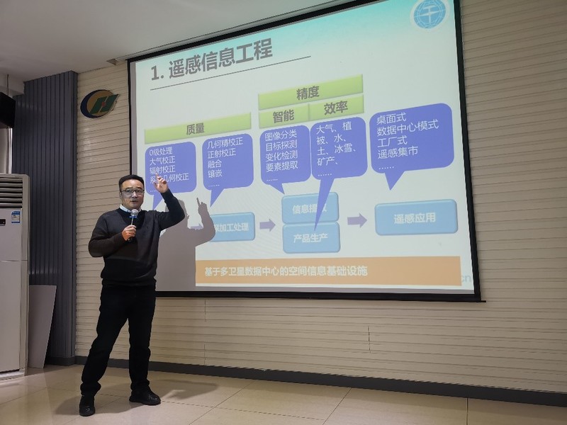 会议邀请到973首席科学家,武汉大学教授、博士生导师张良培教授以及国家杰出青年基金获得者、中科院“百人计划”研究员、中国地质大学(武汉)湖北省“楚天学者”讲座教授王力哲教授,二位均是遥感方向的著名学者。张良培教授以《多源遥感卫星遥感数据的融合处理与应用》为题开展报告,以同质遥感数据融合、异质数据融合、面向应用的融合反演为纲,深入浅出的向现场听众介绍近年来国际上遥感领域关于多源遥感影像信息融合研究的热点问题,并就此做出了展望。王力哲教授以《遥感数据质量提升》为主题开展报告,他首先系统地介绍了遥感信息工程,并从遥感信息应用需求、传感器端进步(以天基互联为例)、空间信息基础设施进步、应用端的进步四方面做了全面而前沿的汇报,紧接着对数据质量提升的方法体系与模型做了详细讲解。报告后,两位教授分别耐心解答了同学们的疑问。
