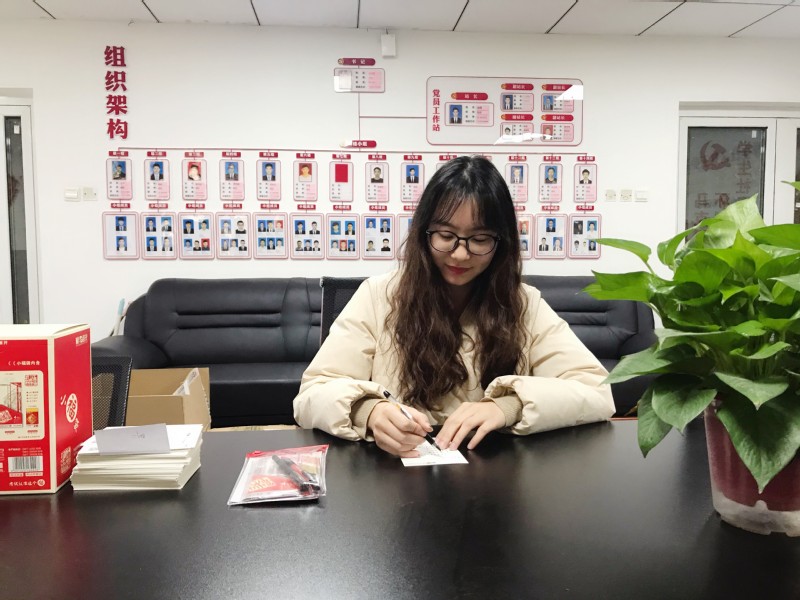 工作组开展为考研学子送暖心礼包活动。礼包包括考研必备文具、小刀、考研祝福小卡片。