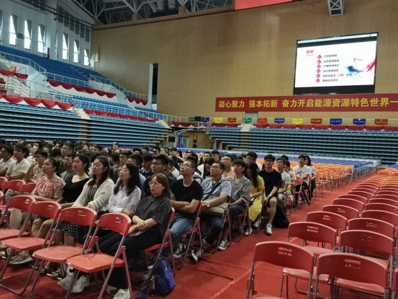 ,向同学们提出了殷切期望;孙爱博同学作为研究生新生代表发表感言,倡导同学们一起在矿大继续努力学习,成就更优秀的自己。