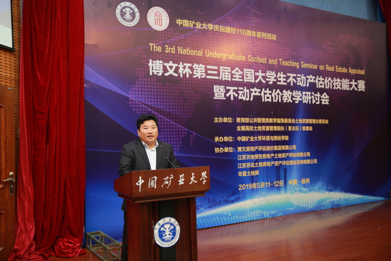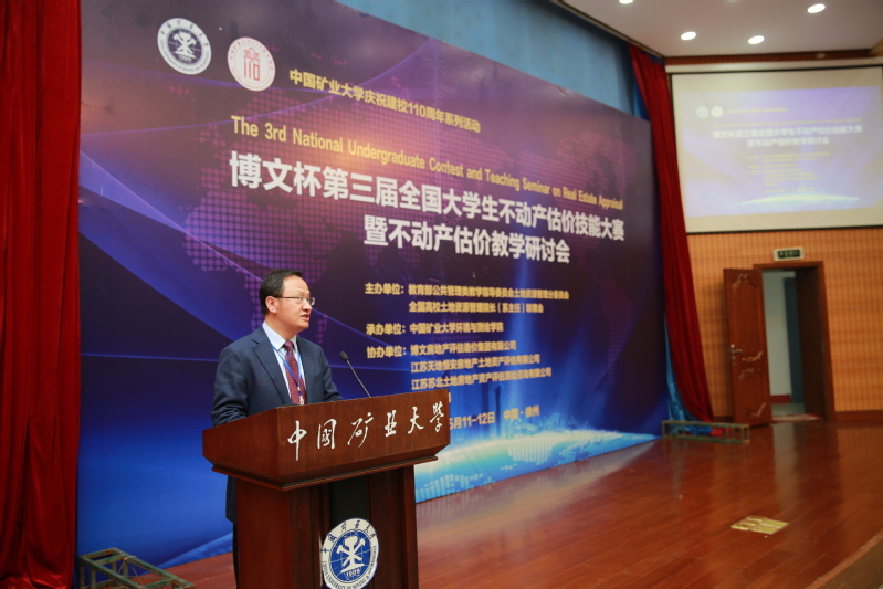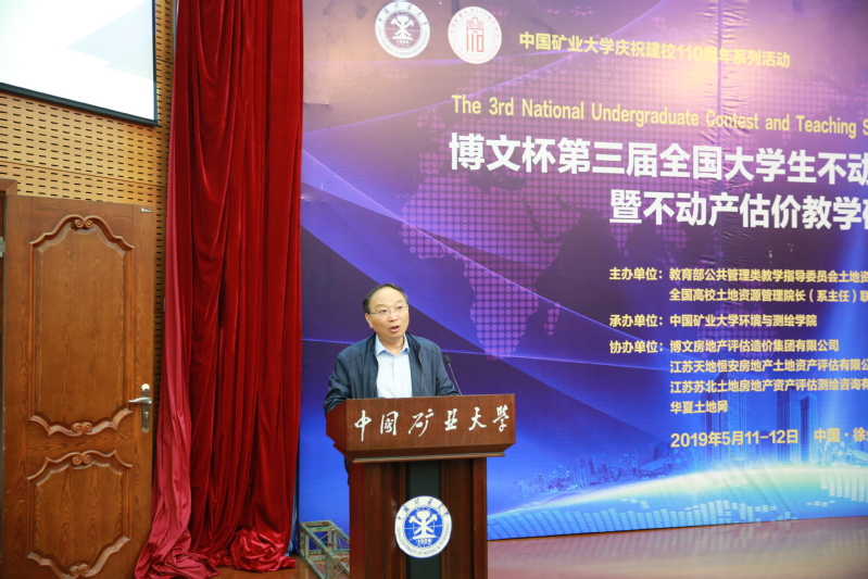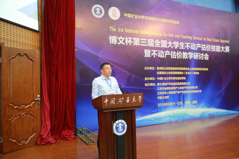 学科发展历程。他指出,不动产估价是土地资源管理学科的重要研究领域之一,具有较强的理论性和实用性。本届大赛暨研讨会以“城乡融合发展战略下的不动产估价实践与创新”为主题具有重要意义,不仅适应了新时代城乡融合发展战略部署的新特点,有助于大学生开阔视野、拓展思路,提升实践技能和创新能力,更有助于满足新时代经济社会发展对估价人才的需求,开启新时代不动产估价实践的新征程。本次活动的开展,为我校土地资源管理专业的教学改革与建设、学生实践技能培养提供了借鉴和启发,希望各位领导、各位专家能够一如既往的对矿大的土地资源管理专业的建设给予指导和支持,提出宝贵意见和建议。
