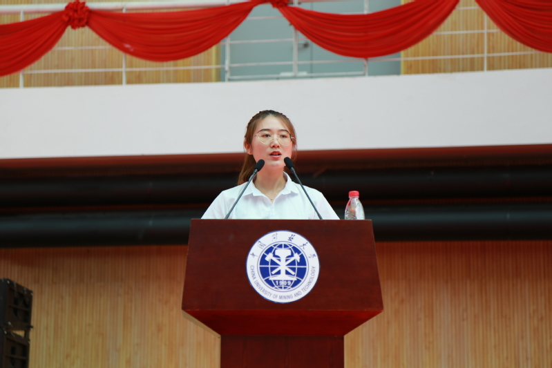 新生辅导员杨琪琪老师祝贺广大新生即将在矿大开启人生新篇章,并宣读院长李德仁院士对新生的寄语,李院长在寄语中号召新生们要先学会做人,坚持师承与创新,面向新时代,做出新贡献,努力成长为创新型大学生。