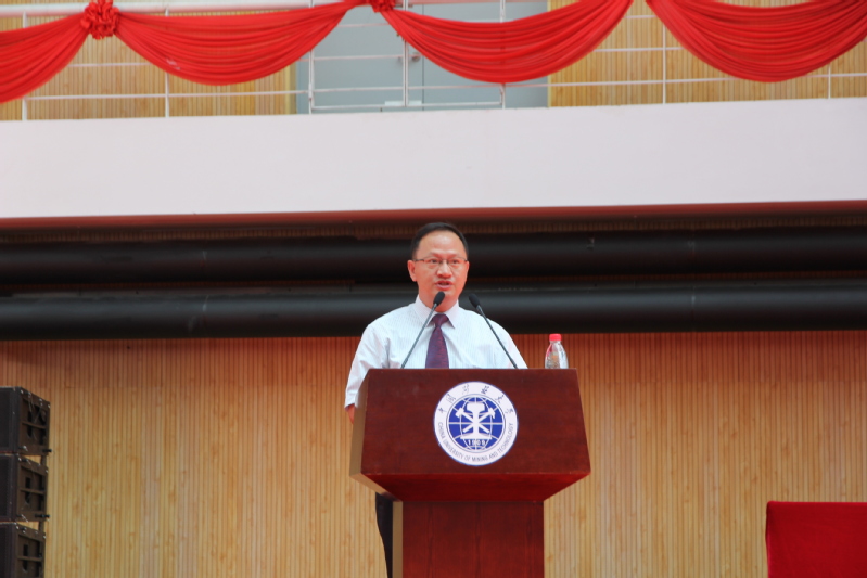 2018级新生开学典礼在南湖体育馆举行。院党委书记李长贵,执行院长张绍良、高井祥教授、党委副书记王守刚、行政副院长郭东、科研副院长郑南山等老师出席了典礼。此次典礼由王守刚副书记主持,2018级435名本科生、170名研究生和37名博士生参加典礼。