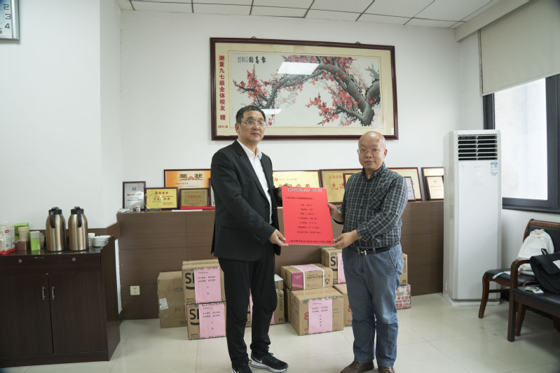 一定不会辜负广大师生的期待,在这场抗疫阻击战中必定凝心聚力、严防死守。随后,华测公司副总裁胡炜发表讲话,简要介绍了华测公司的创新创业理念与新进的科研成果后,他指出:矿大为社会培养了许多人才,为服务地方经济发展做了积极贡献,因此作为回馈,捐赠抗疫物资也是企业义不容辞的责任。他表示在疫情面前没有旁观者,疫情防控没有局外人,对于能够助力学校疫情防控倍感光荣。并对双方今后更加深入密切的交流合作表示了期待。
