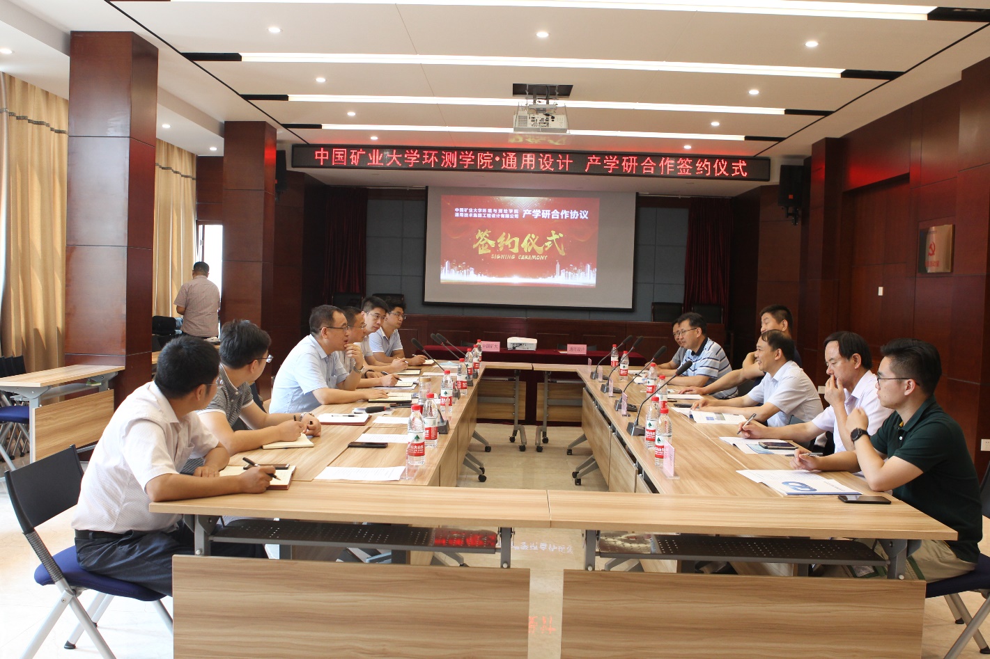 与通用技术集团工程设计有限公司在济南签订产学研合作协议。院党委书记王守刚、执行院长郑南山、协同创新中心主任郭广礼、测绘工程系主任张书毕、实验室中心主任马昌忠和研究生辅导员陆雨一行赴济南与通用技术集团工程设计有限公司副总经理郭宝德、副总工程师兼发展部部长刘树才和矿山设计咨询院副院长彭雷祥等就产学研合作进行交流并举办签约仪式。