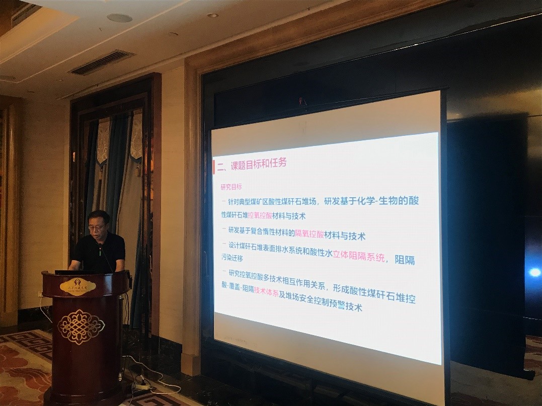 我校承担了该项目课题3 “酸性煤矸石堆控氧控酸及安全控制材料与技术”的研究任务。课题负责人顾和和教授就课题实施方案做了详细的汇报,针对煤矿酸性废石在露天堆储过程中发生氧化后造成的环境污染问题,研发基于化学-生物的控氧控酸材料与应用技术、多基质复合的新型覆盖隔氧材料与压实技术、建立酸性煤矸石堆污水分质立体阻隔系统,形成酸性煤矸石堆酸化污染原位控制技术体系,为工程应用提供强有力的技术支持。课题参与单位包括矿冶科技集团有限公司、山西大地民基生态环境股份有限公司。