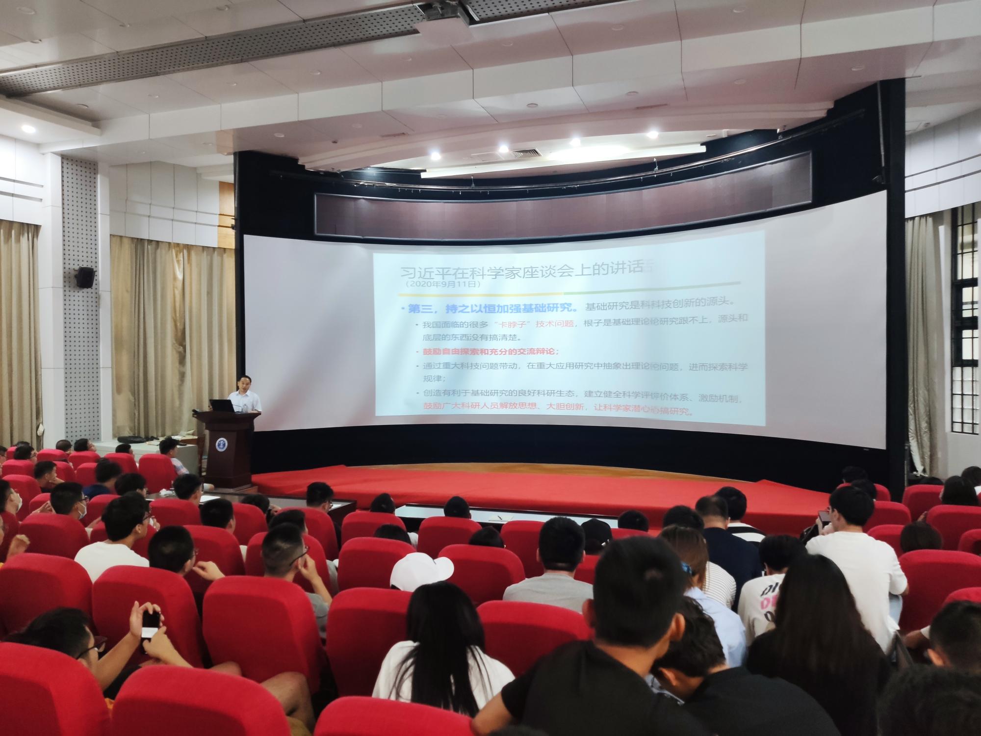 在环测楼B109成功举办2020级研究生入学教育大会。本次入学教育由执行院长郑南山、科研副院长王潜心和研究生辅导员陆雨主讲,全体2020级研究生参与本次大会。