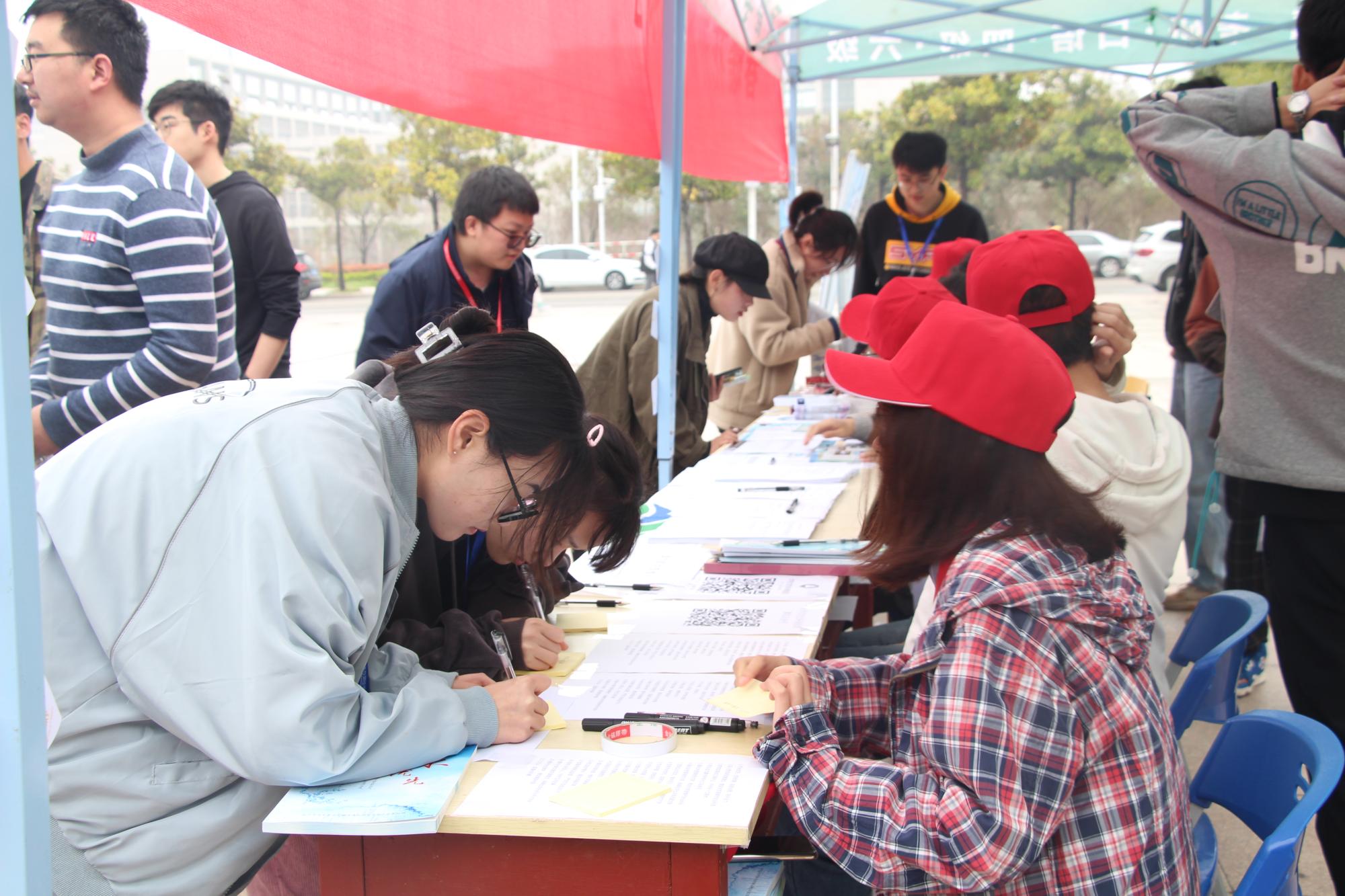 上午8点,大学生世纪环保组织的工作人员在青春广场集合完毕,提前搭建帐篷、布置场地。本次线下活动共设计助力节水矿大人、活动展板签名墙、水质检测趣味赛、环保知识大比拼以及海报宣传小分队五个子活动。为进一步提高广大师生的参与度,活动设置锦鲤抽奖环节。