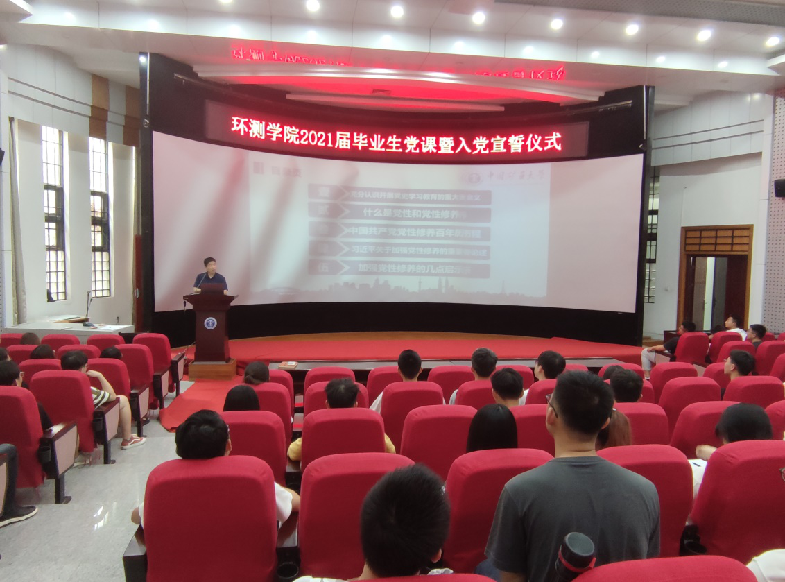 在B109报告厅举行2021届毕业生党课暨入党宣誓仪式,党委书记王守刚作为主讲人给2021届全体毕业生党员以及新发展党员同志上了一堂生动的党课。