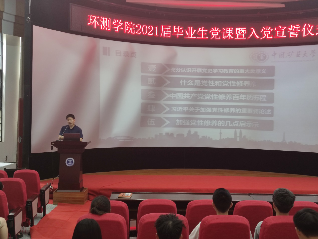 随后,王书记对学习党史的重要性、党性与党性修养、中国共产党党性修养百年历程等内容进行了简要讲解。他希望每位党员同志要加强党史学习教育,在学习中记成和发扬党的优良传统,锤炼个人党性修养。党的建设关乎每一位党员,青年党员在未来更要发挥引领作用,坚定正确的政治方向,形成艰苦朴素的工作作风,脚踏实地,砥砺前行。最后,王书记对广大毕业生党员未来发展提出了殷切的期望和祝愿。