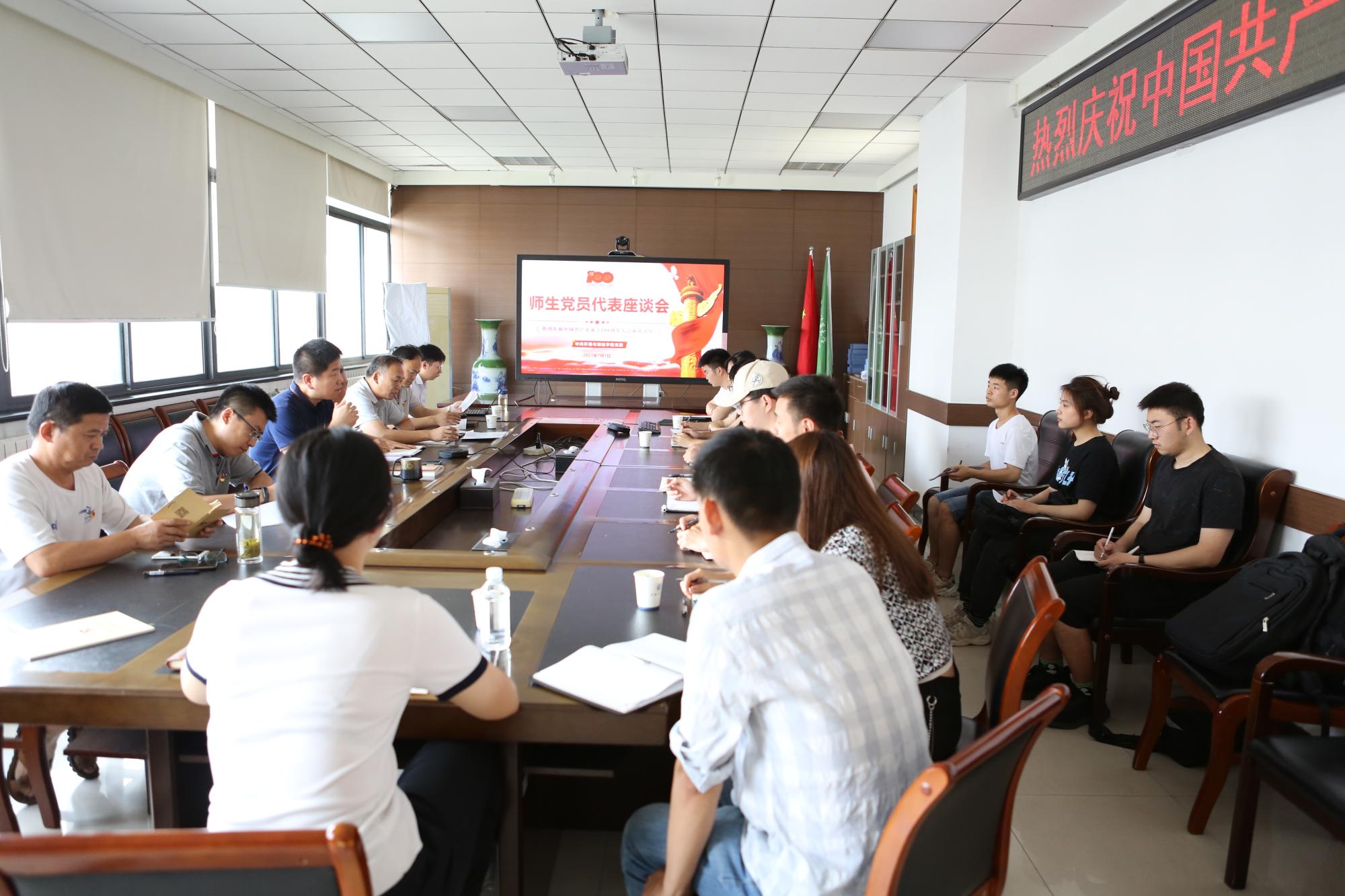于A506会议室召开师生代表座谈会,畅谈学习习近平总书记重要讲话的感受。与会人员纷纷发言,交流体会感受。