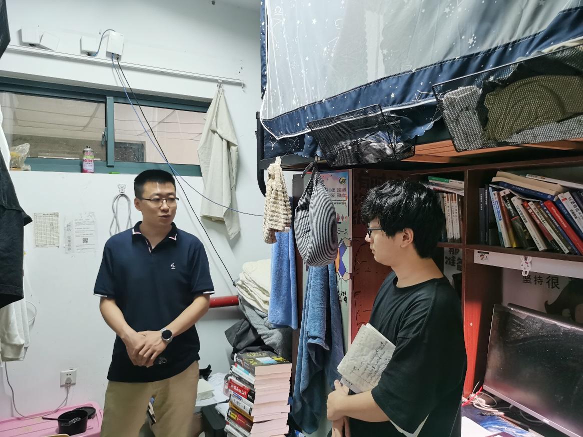 党委副书记韩福顺带队,协同各年级专兼职辅导员、研究生会、研究生党员工作站成员深入走访学生社区,开展宿舍安全卫生检查工作,同时对留校学生进行了慰问关心。