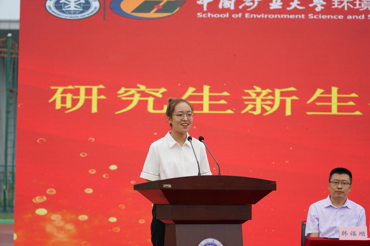 院学生会主席朱守庆同学作为本科生代表发言。他分享了自己精彩纷呈的大学生活,希望和每一位志同道合的环测人一起怀揣希望与理想,无悔前行。随后,资源与环境专业2021级硕士研究生王梦涵和测绘类2021-4班王楠迪分别代表研究生新生和本科生新生进行了发言,她们希望与各位同学共勉,保持初心、积极生活、服务社会,并祝愿各位同学在矿大继续书写自己精彩的人生篇章。