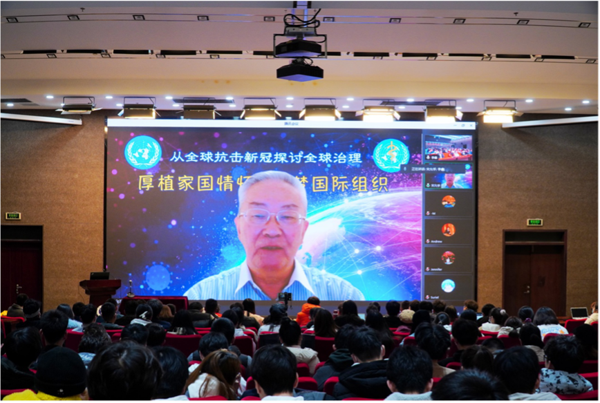 讲座伊始,宋允孚司长首先对参加讲座的师生表示感谢,并向参会同学提出了有关中国在全球抗击新冠疫情的启示的问题,他认真听取了部分同学的想法,并对其给予了肯定。讲座中,宋允孚司长表示国家要加强全球治理人才队伍的建设,并提出在未来培养一部分大学生进入国际组织任职的殷切期望。同时,宋允孚司长建议同学们要从历史观、世界观、角色观三个方面来正确认识国情,他表示在构建全方位大国外交中,我国积极维护联合国的权威和地位,履行应尽的国际义务和责任,中国始终做世界和平的建设者、全球发展的贡献者、国际秩序的维护者。