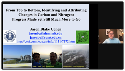 Jason Cohen(杰森科恩)教授受邀线上参加了由中国科学技术协会、未来地球计划全球秘书中心(中国)等单位组织的“气候变化与港珠澳大湾区可持续发展分论坛”,在该论坛上做了“基于自上而下方法识别和归因碳氮变化:进展及展望”的报告,引起了与会专家学者的广泛关注,之后代为主持了讨论环节与参会专家进行了热烈的成人游戏讨论。