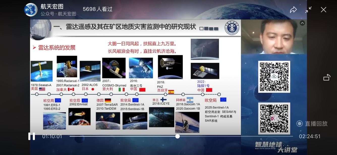 范洪冬老师做客“智慧地球大讲堂”,在线作了题为“矿区地质灾害雷达遥感监测方法及应用”的成人游戏报告。本次报告共吸引了近5700人次观看,受到国内相关领域专家、学者的关注。