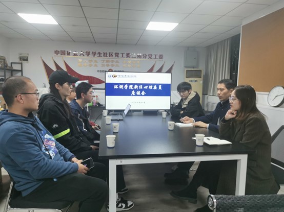 会议接近尾声,侯德伟老师再次强调了作为心理委员责任的重要性,要在日常生活中与同学们建立起好的关系,关心了解同学生活情况。并对同学们的日常生活进行了亲切的问候,表示了学校对于学生心理健康的重视以及对心理委员工作的支持。