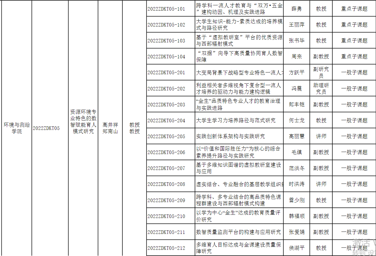 组织申报的《资源环境专业特色的数智赋能育人模式研究》课题获批立项,其中包含子课题16项。